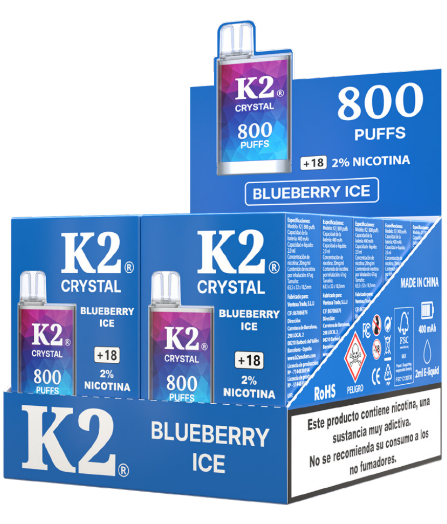 El K2 Crystal Blueberry Ice Disposable Vape ofrece una deliciosa explosión de arándanos dulces mezclados con un acabado fresco y mentolado para una experiencia de vapeo refrescante. Diseñado para un rendimiento suave y conveniencia diaria, este vape desechable ofrece hasta 800 inhalaciones satisfactorias con una constante concentración de 2% de nicotina. Su diseño elegante y compacto lo hace ideal para usar en cualquier lugar, sin necesidad de recargar o cargar. Simplemente inhala y disfruta de vapor limpio y sabroso en cualquier momento.